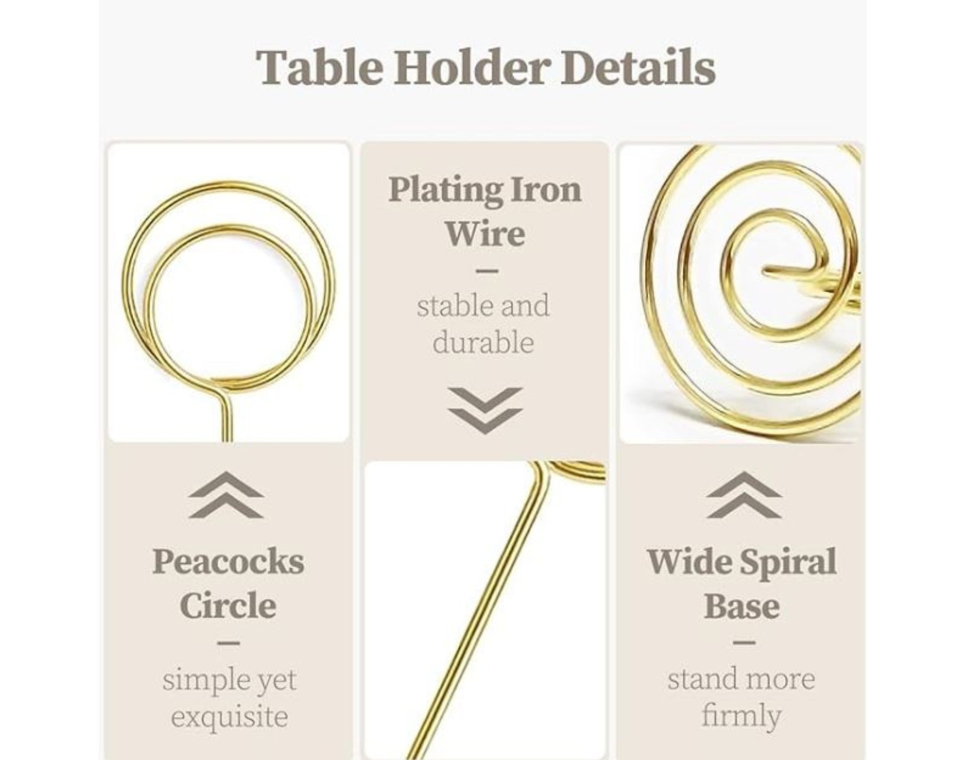 Experience the beauty of simplicity with our mini tabletop card holders. The unique design on the clip adds an elegant touch, resembling a delicate feather on a peacock's tail. Despite their uncomplicated design, these holders firmly and stylishly display your cards, pictures, or memos.